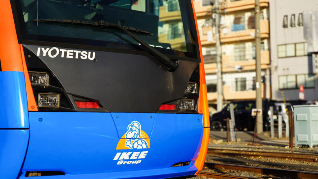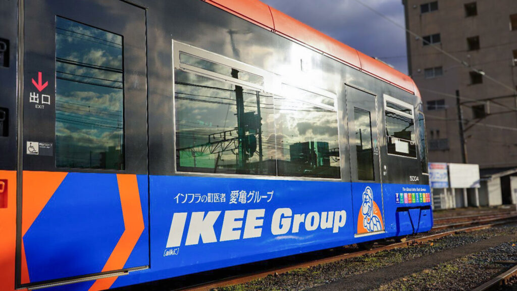 12月より、伊予鉄市内電車に愛亀グループのラッピング電車が運行開始します。