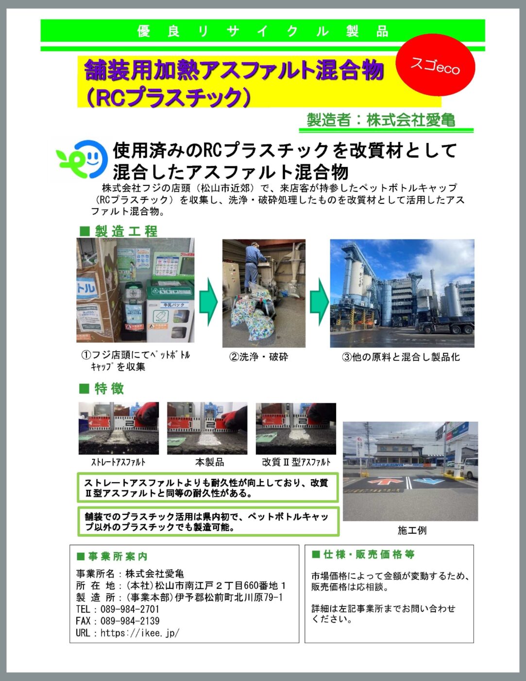 5月4日(日)20:54〜から、南海放送「えひめの愛顔発信 #ひめ推し」にて、愛媛県よりスゴeco認定を受けた「舗装用加熱アスファルト混合物(RCプラスチック)」が「優良リサイクル製品」として紹介されます。